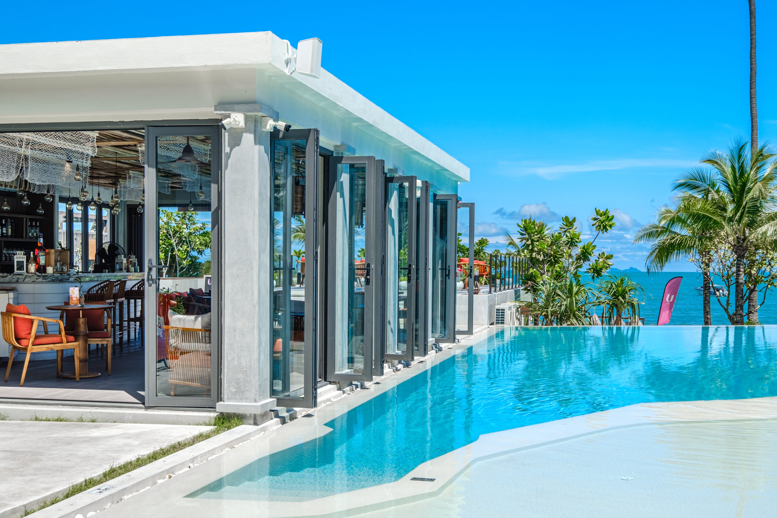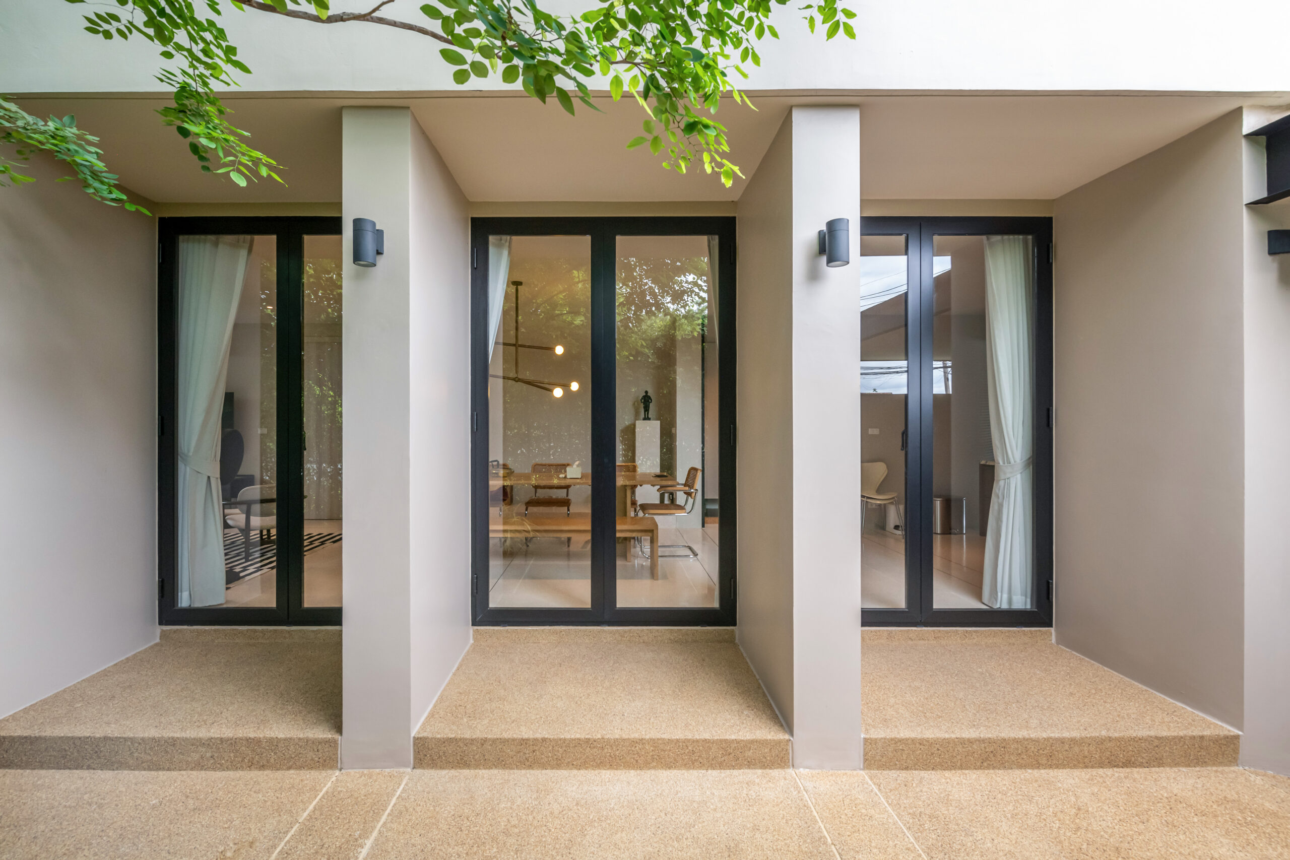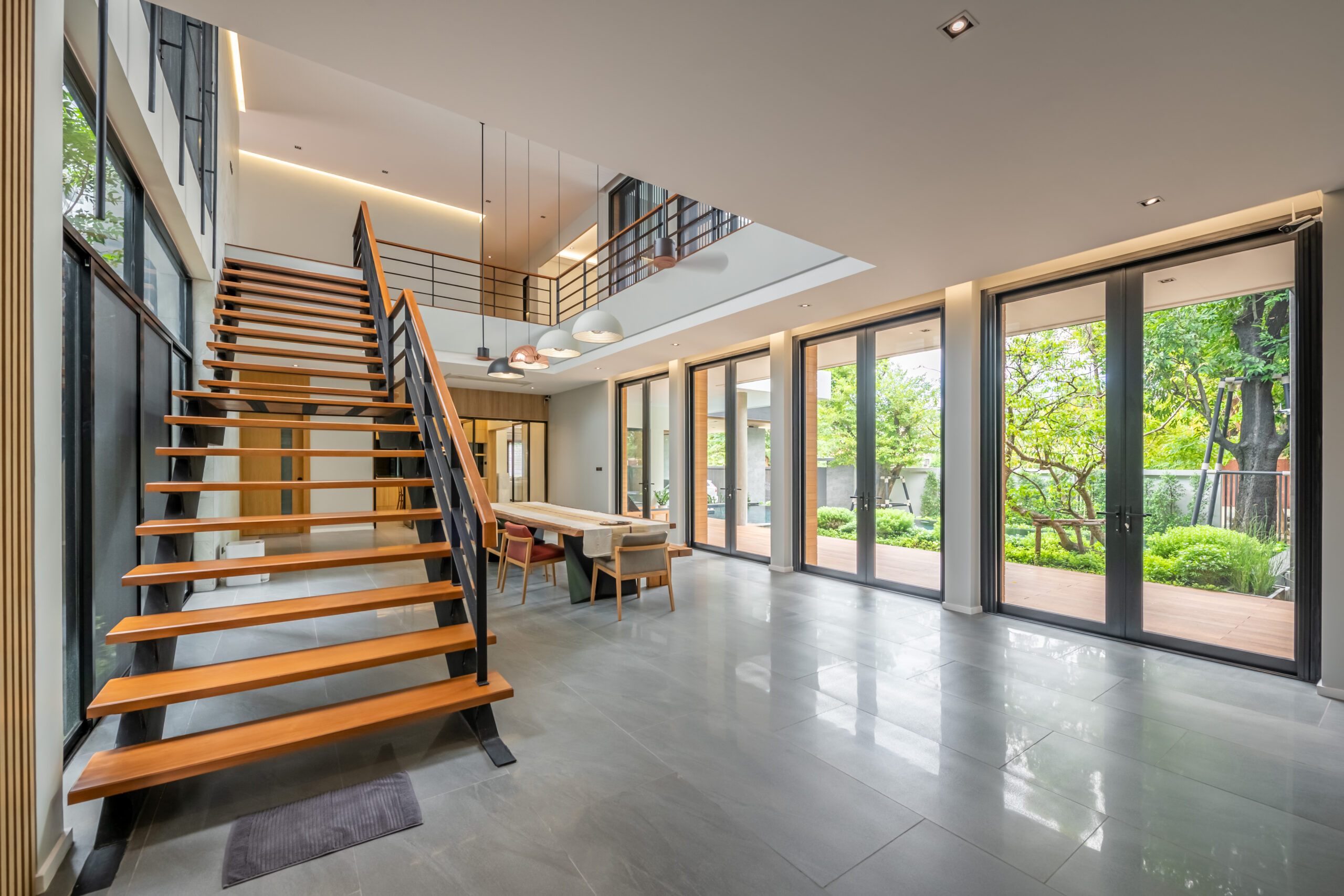 ระบบประตูบานเฟี้ยม เปิดกว้างได้เต็มพื้นที่ เชื่อมต่อภายใน–ภายนอกอย่างลงตัว เหมาะสำหรับบ้านที่ต้องการความโปร่ง โล่ง และรับแสงธรรมชาติได้อย่างเต็มที่