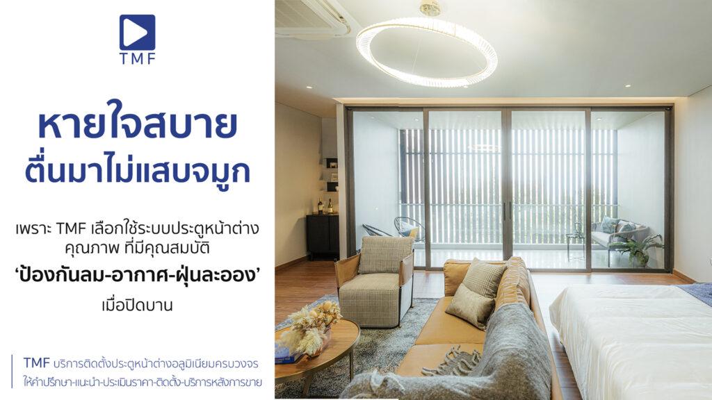 ซึ่ง TMF เลือกใช้ระบบประตูหน้าต่างคุณภาพ ที่มาพร้อมคุณสมบัติ ‘ป้องกันลม-อากาศ-ฝุ่นละออง’ ลอดผ่านเมื่อปิดบาน เพื่อให้เจ้าของบ้านได้อากาศที่ดี สามารถใช้ชีวิต จนไปถึงตื่นนอนมาได้แบบโล่ง ไม่แสบจมูก ไม่คันคอ และลดอาการภูมิแพ้ ได้อย่างสบายใจ